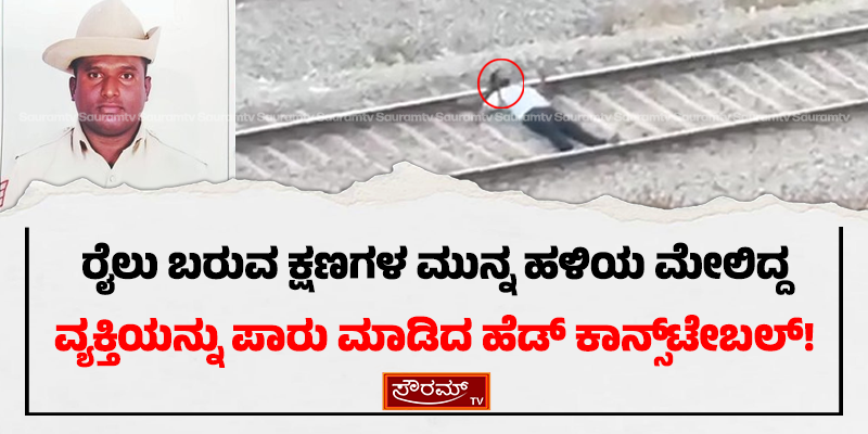 ರೈಲು ಬರುವ ಕ್ಷಣಗಳ ಮುನ್ನ ಹಳಿಯ ಮೇಲಿದ್ದ ವ್ಯಕ್ತಿಯನ್ನು ಪಾರು ಮಾಡಿದ ಹೆಡ್
