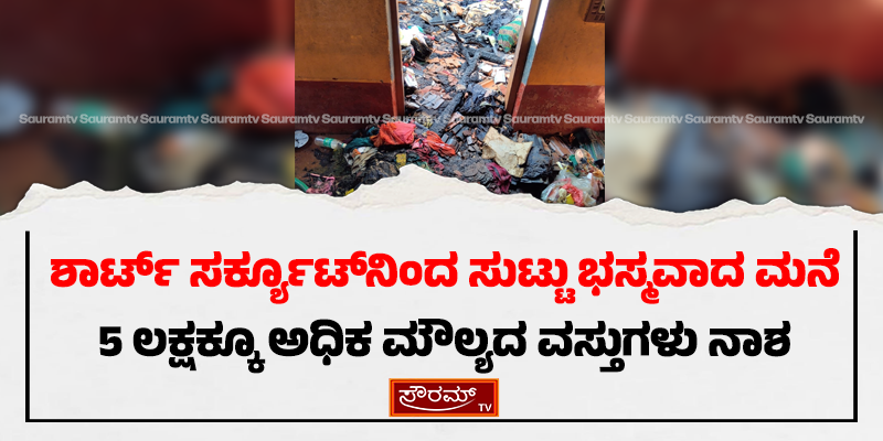 ಶಾರ್ಟ್ ಸರ್ಕ್ಯೂಟ್ನಿಂದ ಸುಟ್ಟು ಭಸ್ಮವಾದ ಮನೆ; 5 ಲಕ್ಷಕ್ಕೂ ಅಧಿಕ ಮೌಲ್ಯದ ವಸ್ತುಗಳು