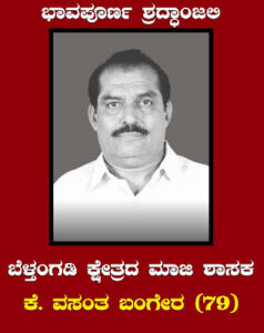 ಬೆಳ್ತಂಗಡಿ ಮಾಜಿ ಶಾಸಕ ಕೆ.ವಸಂತ ಬಂಗೇರ ಅಸ್ತಂಗತ
