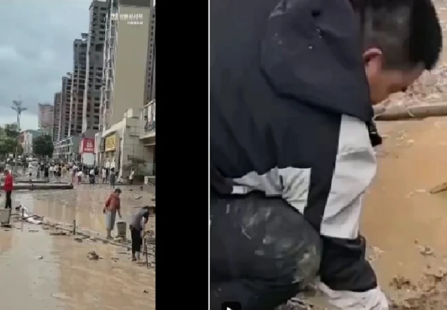 ಚೀನಾದ ಶಾಂಕ್ಸಿ ಪ್ರಾಂತ್ಯದಲ್ಲಿರುವ ವುಕಿ ಕೌಂಟಿಯಲ್ಲಿ ಹಠಾತ್ ಪ್ರವಾಹ ಉಂಟಾಗಿ ಸ್ಥಳೀಯ ಚಿನ್ನದ ಅಂಗಡಿಯಿಂದ ಸುಮಾರು 20 ಕಿಲೋಗ್ರಾಂಗಳಷ್ಟು ಚಿನ್ನ ಮತ್ತು ಬೆಳ್ಳಿ ಆಭರಣಗಳು ಕೊಚ್ಚಿ ಹೋಗಿದ್ದು, ನಂತರ ಜನರು ಚಿನ್ನ ಹುಡುಕುವ ಕೆಲಸ ಮಾಡಿದ್ದು, ವಿಡಿಯೋ ವೈರಲ್ ಆಗಿದೆ.