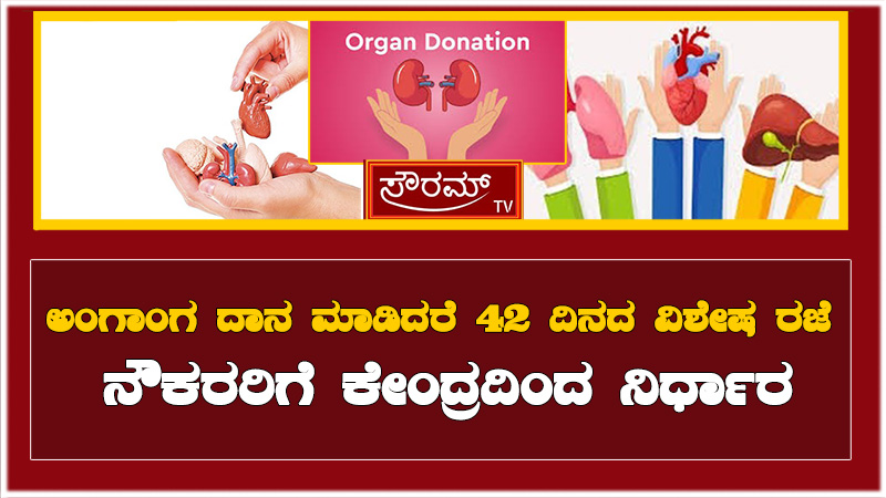 ಅಂಗಾಂಗ ದಾನ ಮಾಡುವ ನೌಕರರಿಗೆ 42 ದಿನದ ರಜೆ ನೀಡುವುದಾಗಿ ಕೇಂದ್ರ ಸರ್ಕಾರದ ಘೋಷಣೆ ಮಾಡಿದೆ.
