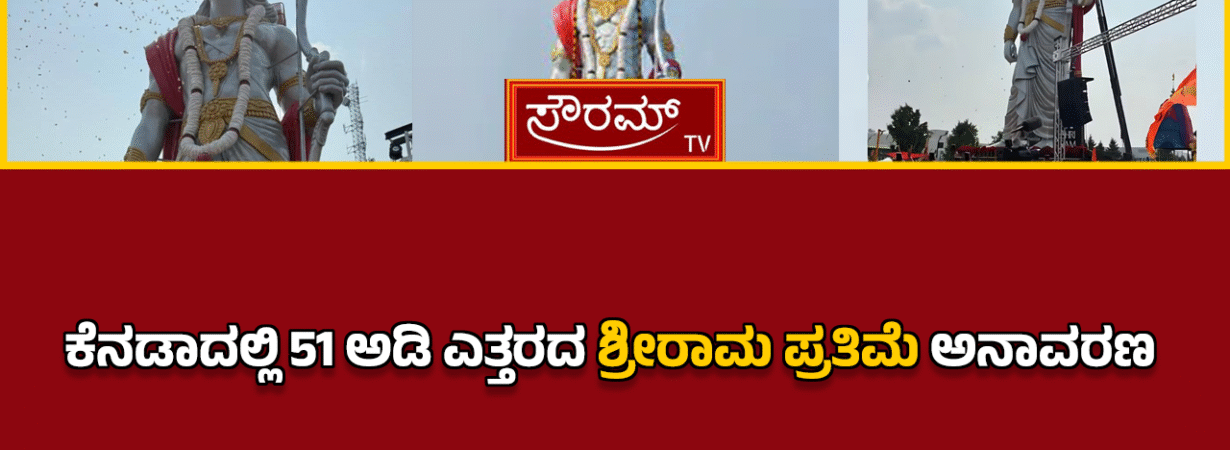 2024 ರಲ್ಲಿ ಅಯೋಧ್ಯೆಯಲ್ಲಿ ನಡೆದ ರಾಮ ಜನ್ಮಭೂಮಿ ದೇವಾಲಯ ಉದ್ಘಾಟನೆಯಿಂದ ಪ್ರೇರಿತವಾಗಿ ಕೆನಡಾದಲ್ಲಿ ಶ್ರೀರಾಮನ ಭಾರಿ ಗಾತ್ರದ ಪ್ರತಿಮೆಯನ್ನು ನಿರ್ಮಿಸಲಾಗಿದೆ. ಈ ಅಪೂರ್ವ ಕ್ಷಣಕ್ಕೆ 10 ಸಾವಿರಕ್ಕೂ ಹೆಚ್ಚು ಭಕ್ತರು ಸಾಕ್ಷಿಯಾಗಿದ್ದಾರೆ. ಶ್ರೀರಾಮನ ಪ್ರತಿಮೆ ಅನಾವರಣದ ವೇಳೆ ಅಲ್ಲಿ ಬರೀ ಜೈಶ್ರೀರಾಮ್ ಎಂಬ ಘೋಷಣೆಯೇ ಮುಗಿಲು ಮುಟ್ಟಿತ್ತು. ಅಂದಹಾಗೆ ಈ ಶ್ರೀರಾಮನ ಪ್ರತಿಮೆಯೂ ಟೊರೊಂಟೊ ಪಿಯರ್ಸನ್ ಅಂತರಾಷ್ಟ್ರೀಯ ವಿಮಾನ ನಿಲ್ದಾಣದ ಸಮೀಪದಲ್ಲಿ ಇದ್ದು ಇಲ್ಲಿ ವಿಮಾನಗಳ ಲ್ಯಾಂಡಿಂಗ್ ವೇಳೆ ಹಾಗೂ ಟೇಕಾಫ್ ವೇಳೆ ಇದು ವಿಹಾಂಗಮ ನೋಟವನ್ನು ಪ್ರಯಾಣಿಕರಿಗೆ ನೀಡಲಿದೆ.