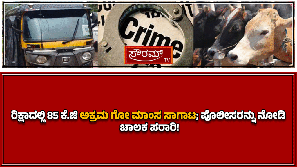 ರಿಕ್ಷಾದಲ್ಲಿ 85 ಕೆ.ಜಿ ಅಕ್ರಮ ಗೋ ಮಾಂಸ ಸಾಗಾಟ; ಪೊಲೀಸರನ್ನು ನೋಡಿ ಚಾಲಕ ಪರಾರಿ!