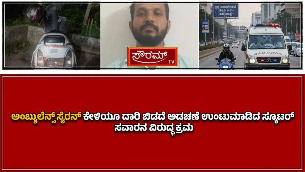 ಅಂಬ್ಯುಲೆನ್ಸ್ ಸೈರನ್ ಕೇಳಿಯೂ ದಾರಿ ಬಿಡದೆ ಅಡಚಣೆ ಉಂಟುಮಾಡಿದ ಸ್ಕೂಟರ್ ಸವಾರನ ವಿರುದ್ಧ ಕ್ರಮ.