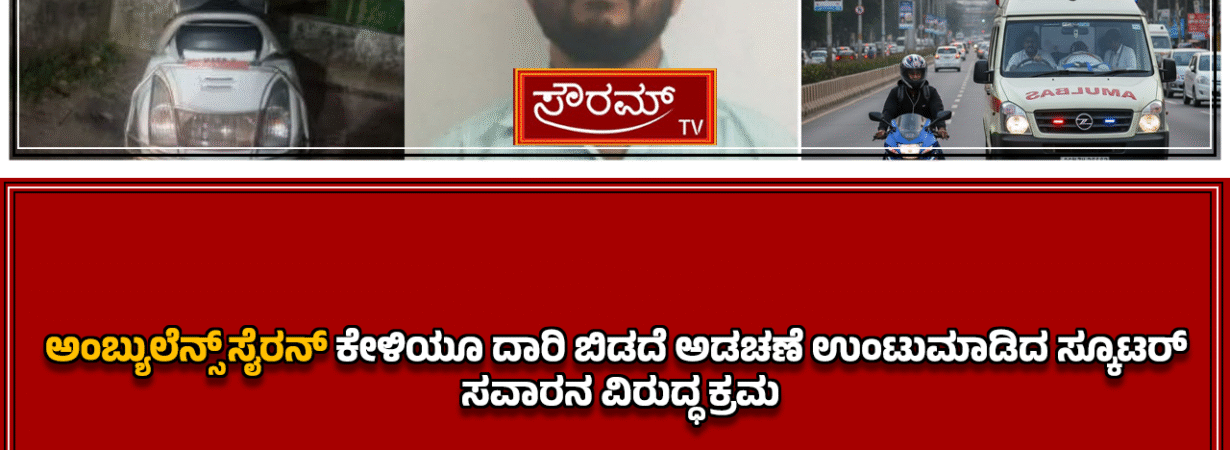 ಅಂಬ್ಯುಲೆನ್ಸ್ ಸೈರನ್ ಕೇಳಿಯೂ ದಾರಿ ಬಿಡದೆ ಅಡಚಣೆ ಉಂಟುಮಾಡಿದ ಸ್ಕೂಟರ್ ಸವಾರನ ವಿರುದ್ಧ ಕ್ರಮ.