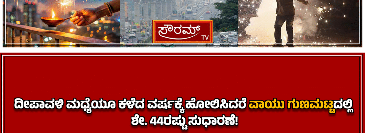 ದೀಪಾವಳಿ ಮಧ್ಯೆಯೂ ಕಳೆದ ವರ್ಷಕ್ಕೆ ಹೋಲಿಸಿದರೆ ವಾಯು ಗುಣಮಟ್ಟದಲ್ಲಿ ಶೇ. 44ರಷ್ಟು ಸುಧಾರಣೆ!
