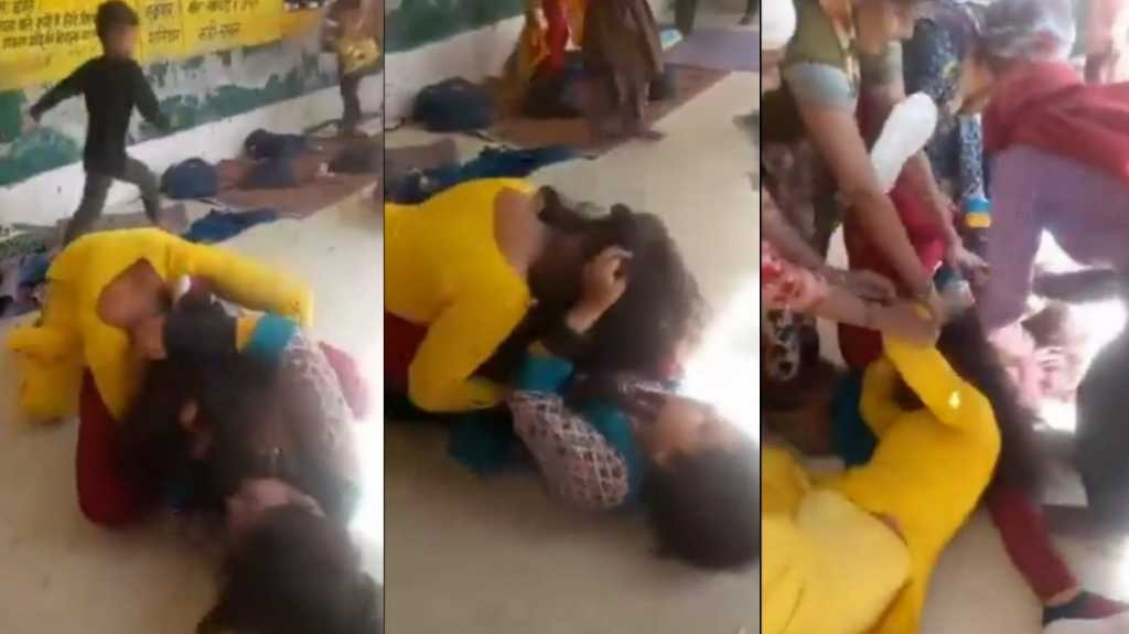 ಅಂಗನವಾಡಿ ಶಿಕ್ಷಕಿ ಮತ್ತು ಸಹಾಯಕಿಯ ನಡುವೆ ಮಾರಾಮಾರಿ ನಡೆದಿರುವ ಘಟನೆಯೊಂದು ನಡೆದಿದ್ದು, ಸದ್ಯ ಅದರ ವಿಡಿಯೋ Viral ಆಗಿದೆ. ಉತ್ತರ ಪ್ರದೇಶದ ಮಥುರಾದ ಪ್ರಾಥಮಿಕ ಶಾಲೆಯೊಂದರಲ್ಲಿ ಈ ಘಟನೆ ನಡೆದಿದ್ದು, ಈ ಸಂದರ್ಭದಲ್ಲಿ ಇಬ್ಬರು ಮಹಿಳೆಯರು ಪರಸ್ಪರರ ಕೂದಲನ್ನು ಎಳೆದುಕೊಂಡು, ಕೆನ್ನೆಗೆ ಹೊಡೆದುಕೊಂಡು ದೈಹಿಕವಾಗಿ ಜಗಳವಾಡಿದ್ದಾರೆ.ಇವರಿಬ್ಬರ ಜಗಳದಲ್ಲಿ ಶಾಲೆಯ ಕೆಲವು ಮಕ್ಕಳು ಸಹ ಈ ಜಗಳದಲ್ಲಿ ಭಾಗವಹಿಸಿದರು ಎಂದು ವರದಿಯಾಗಿದೆ. ಈ ಘಟನೆಯ ವಿಡಿಯೊ ಸಾಮಾಜಿಕ ಜಾಲತಾಣಗಳಲ್ಲಿ ವೈರಲ್ ಆಗಿದ್ದು, ಅಂಗನವಾಡಿ ಶಿಕ್ಷಕಿ ಮತ್ತು ಸಹಾಯಕಿಯ ಜಗಳವನ್ನು ಸ್ಥಳೀಯರು ಬಿಡಿಸಲು ಪ್ರಯತ್ನಿಸುತ್ತುರುವುದನ್ನು ಸಹ ನಾವು ವಿಡಿಯೋದಲ್ಲಿ ನೋಡಬಹುದಾಗಿದೆ.ಹೀಗೆ ಜುಟ್ಟು ಹಿಡಿದು ಹೊಡೆದಾಡಿಕೊಂಡ ಸಹಾಯಕ ಶಿಕ್ಷಕಿ ಪ್ರೀತಿ ತಿವಾರಿ ಮತ್ತು ಅಂಗನವಾಡಿ ಕಾರ್ಯಕರ್ತೆ ಚಂದ್ರಾವತಿ ಎಂದು ತಿಳಿದು ಬಂದಿದೆ.
