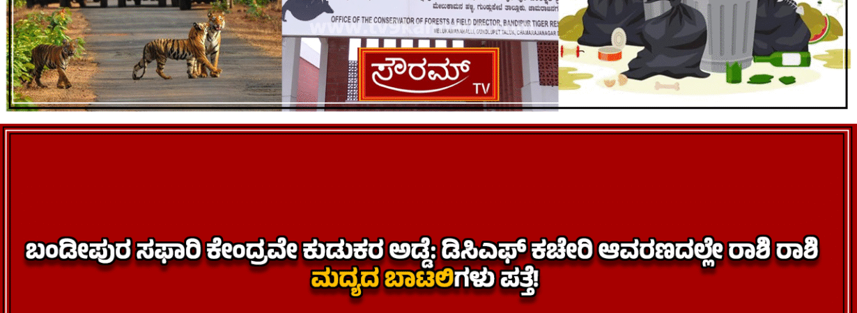 ಬಂಡೀಪುರ ಸಫಾರಿ ಕೇಂದ್ರವೇ ಕುಡುಕರ ಅಡ್ಡೆ: ಡಿಸಿಎಫ್ ಕಚೇರಿ ಆವರಣದಲ್ಲೇ ರಾಶಿ ರಾಶಿ ಮದ್ಯದ ಬಾಟಲಿಗಳು ಪತ್ತೆ!