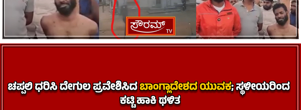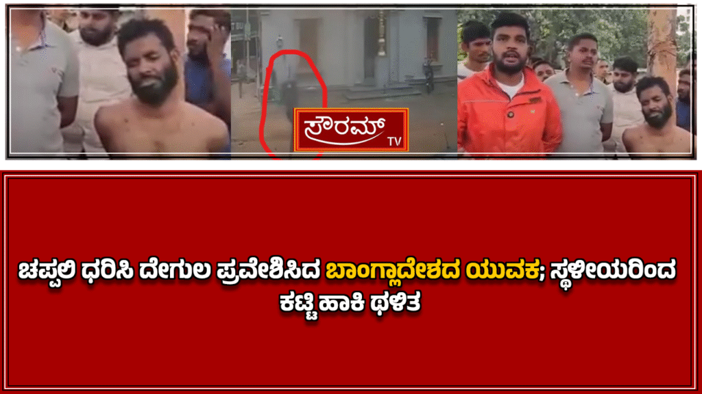ಚಪ್ಪಲಿ ಧರಿಸಿ ದೇಗುಲ ಪ್ರವೇಶಿಸಿದ ಬಾಂಗ್ಲಾದೇಶದ ಯುವಕ; ಸ್ಥಳೀಯರಿಂದ ಕಟ್ಟಿ ಹಾಕಿ ಥಳಿತ