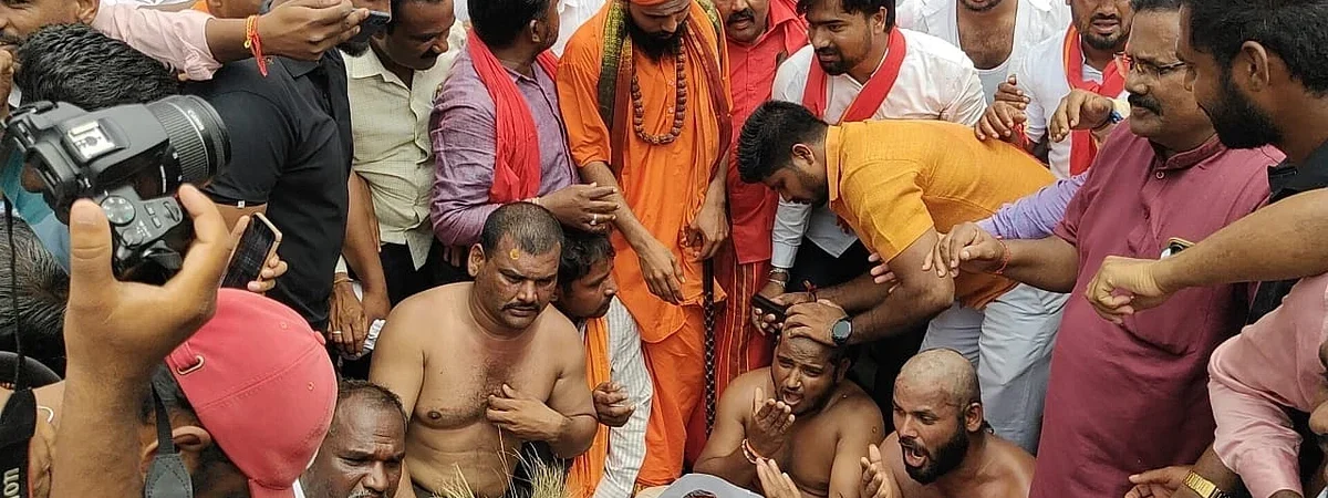 ಅಲ್ಲಿ ರಸ್ತೆ ತಡೆ ನಡೆಸಲಾಯಿತು ಹಾಗೂ ಕೆಲವರು ತಲೆ ಬೋಳಿಸಿಕೊಂಡು, ಲಬೊ ಲಬೋ ಬಾಯಿ ಬಡಿದುಕೊಂಡು ಸರ್ಕಾರದ ವಿರುದ್ಧ ಧಿಕ್ಕಾರ ಕೂಗಿದರು.