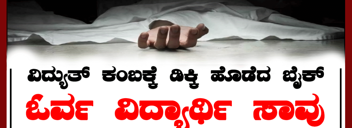ವಿದ್ಯುತ್ ಕಂಬಕ್ಕೆ ಡಿಕ್ಕಿ ಹೊಡೆದ ಬೈಕ್; ಓರ್ವ ವಿದ್ಯಾರ್ಥಿ ಸಾವು