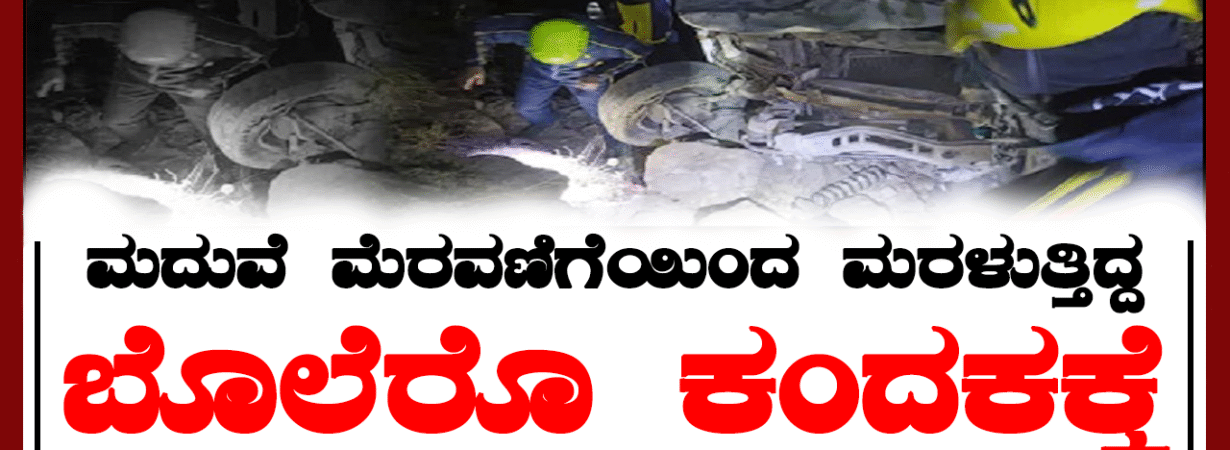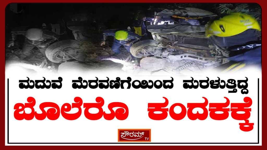 ಮದುವೆ ಮೆರವಣಿಗೆಯಿಂದ ಮರಳುತ್ತಿದ್ದ ಬೊಲೆರೊ ಕಂದಕಕ್ಕೆ