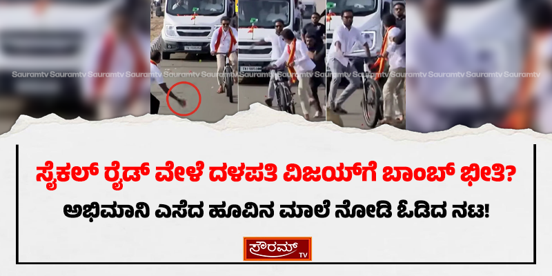 ಸೈಕಲ್ ರೈಡ್ ವೇಳೆ ದಳಪತಿ ವಿಜಯ್ಗೆ ಬಾಂಬ್ ಭೀತಿ? ಅಭಿಮಾನಿ ಎಸೆದ ಹೂವಿನ ಮಾಲೆ ನೋಡಿ ಓಡಿದ ನಟ!