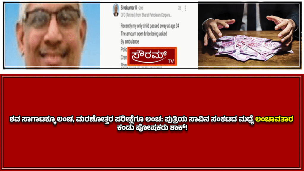ಪುತ್ರಿ ಸಾವಿನ ಸಂಕಟದ ಮಧ್ಯ ತಂದೆಗೆ ಲಂಚದ ಕಾಟ ತಪ್ಪಿಲ್ಲ. ಬೆಂಗಳೂರಿನ ಶಿವಕುಮಾರ್ ಗೆ ಲಂಚದ ಕರಾಳ ಅನುಭವ ಆಗಿದೆ. ಪುತ್ರಿಯ ಶವ ಸಾಗಾಟ ಅಂತ್ಯಕ್ರಿಯೆ ಮರಣೋತ್ತರ ಪರೀಕ್ಷೆಯಲ್ಲಿ ಲಂಚ ಸ್ವೀಕರಿಸಿದ್ದಾರೆ. ಪ್ರತಿಯೊಂದರಲ್ಲೂ ಲಂಚಾವತಾರ ಕಂಡು ಶಿವಕುಮಾರ್ ಶಾಕ್ ಆಗಿದ್ದಾರೆ. ಖಾಸಗಿ ಸಂಸ್ಥೆಯಲ್ಲಿ ಮಾಜಿ ಮುಖ್ಯ ಹಣಕಾಸು ಸಿಬ್ಬಂದಿಯಾಗಿ ಶಿವಕುಮಾರ್ ಕಾರ್ಯನಿರ್ವಹಿಸುತ್ತಿದ್ದಾರೆ.