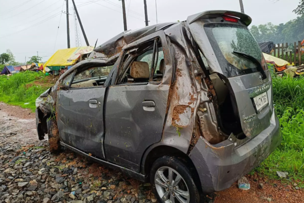 ಗಂಗೊಳ್ಳಿಯಲ್ಲಿ ಬ್ರೇಕ್ ಹಾಕಿದ ತಕ್ಷಣ ಕಾರು ಪಲ್ಟಿ-ಎನ್‌ಎಚ್ 66ರಲ್ಲಿ ಭೀಕರ ಅಪಘಾತ