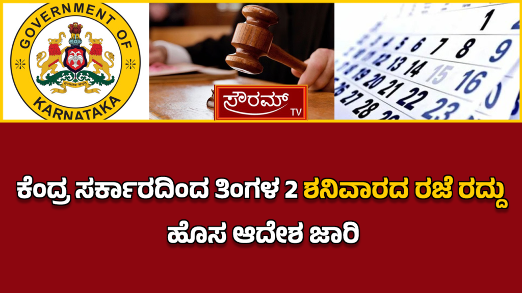 ಕೆಂದ್ರ ಸರ್ಕಾರದಿಂದ ತಿಂಗಳ 2 ಶನಿವಾರದ ರಜೆ ರದ್ದು – ಹೊಸ ಆದೇಶ ಜಾರಿ