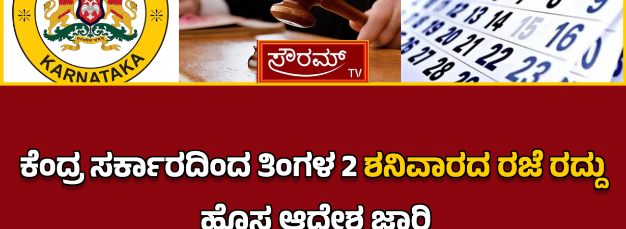 ಕೆಂದ್ರ ಸರ್ಕಾರದಿಂದ ತಿಂಗಳ 2 ಶನಿವಾರದ ರಜೆ ರದ್ದು – ಹೊಸ ಆದೇಶ ಜಾರಿ