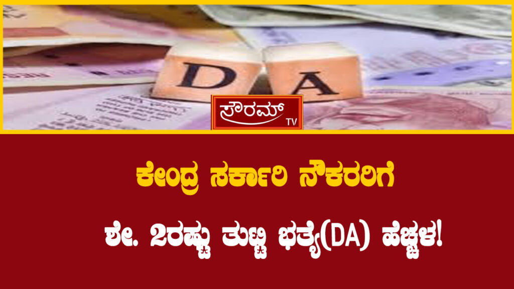 ಕೇಂದ್ರ ಸರ್ಕಾರಿ ನೌಕರರಿಗೆ ಶೇ. 2 ರಷ್ಟು ತುಟ್ಟಿ ಭತ್ಯೆ (DA)ಹೆಚ್ಚಳ