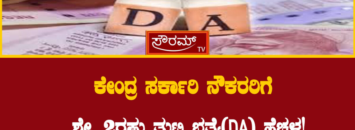 ಕೇಂದ್ರ ಸರ್ಕಾರಿ ನೌಕರರಿಗೆ ಶೇ. 2 ರಷ್ಟು ತುಟ್ಟಿ ಭತ್ಯೆ (DA)ಹೆಚ್ಚಳ