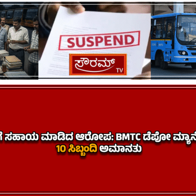 ಬಿಎಂಟಿಸಿ ಚಾಲಕರು ಕುಡಿದು ಡ್ರೈವ್‌ ಮಾಡುತ್ತಿರುವ ವೀಡಿಯೋ ವೈರಲ್ ಆಗಿತ್ತು. ಕುಡಿದು ಬರುತ್ತಿದ್ದ ಬಸ್ ಡ್ರೈವರ್‌ಗಳಿಗೆ ಲಂಚ ಪಡೆದು ಅಧಿಕಾರಿಗಳು ಡ್ಯೂಟಿ ನೀಡುತ್ತಿದ್ದರು. ಈ ಹಿನ್ನೆಲೆಯಲ್ಲಿ ಡಿಪೋ ಮ್ಯಾನೇಜರ್ ಸೇರಿದಂತೆ 9 ಚಾಲಕರು ಸಸ್ಪೆಂಡ್ ಆಗಿದ್ದಾರೆ.