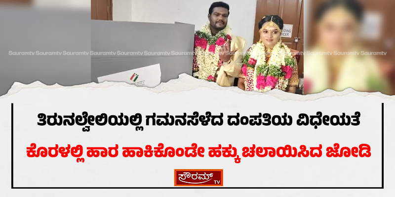 ತಿರುನಲ್ವೇಲಿಯಲ್ಲಿ ಗಮನಸೆಳೆದ ದಂಪತಿಯ ವಿಧೇಯತೆ: ಕೊರಳಲ್ಲಿ ಹಾರ ಹಾಕಿಕೊಂಡೇ ಹಕ್ಕು ಚಲಾಯಿಸಿದ ಜೋಡಿ