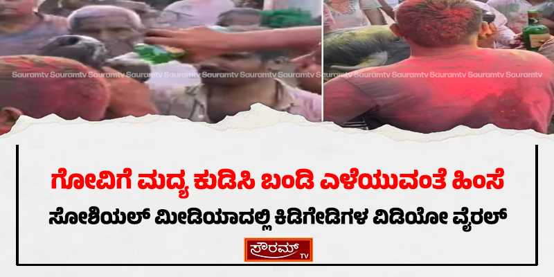 ಗೋವಿಗೆ ಮದ್ಯ ಕುಡಿಸಿ ಬಂಡಿ ಎಳೆಯುವಂತೆ ಹಿಂಸೆ; ಸೋಶಿಯಲ್ ಮೀಡಿಯಾದಲ್ಲಿ ಕಿಡಿಗೇಡಿಗಳ ವಿಡಿಯೋ ವೈರಲ್.