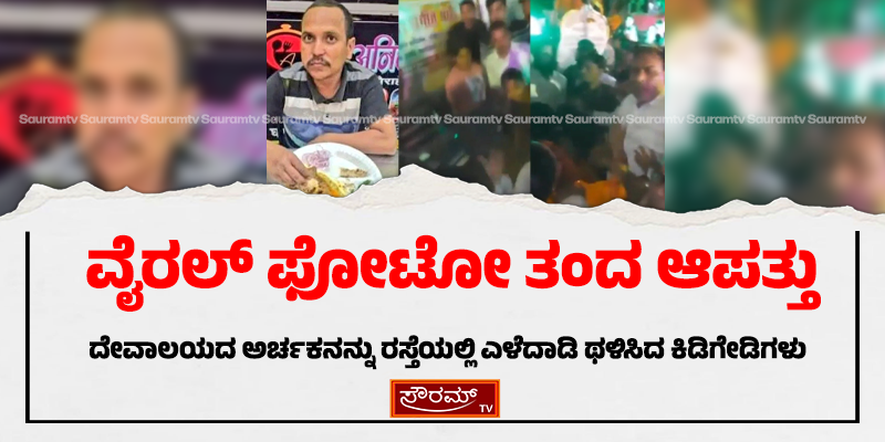 ವೈರಲ್ ಫೋಟೋ ತಂದ ಆಪತ್ತು: ದೇವಾಲಯದ ಅರ್ಚಕನನ್ನು ರಸ್ತೆಯಲ್ಲಿ ಎಳೆದಾಡಿ ಥಳಿಸಿದ ಕಿಡಿಗೇಡಿಗಳು.