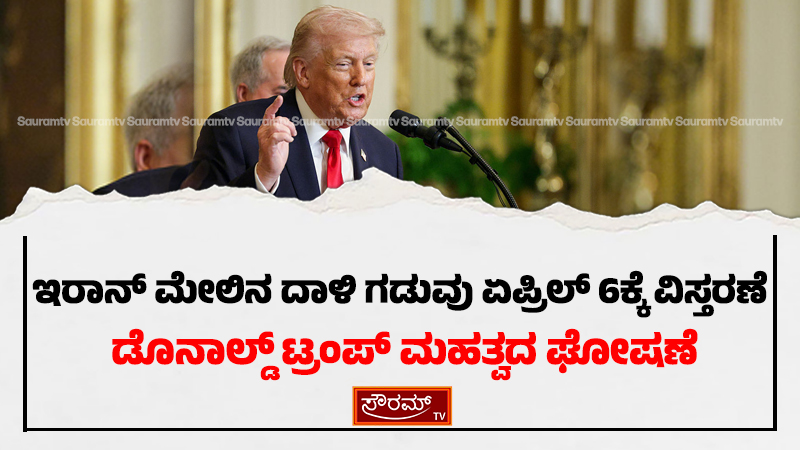 ಇರಾನ್ ಮೇಲಿನ ದಾಳಿ ಗಡುವು ಏಪ್ರಿಲ್ 6ಕ್ಕೆ ವಿಸ್ತರಣೆ: ಡೊನಾಲ್ಡ್ ಟ್ರಂಪ್ ಮಹತ್ವದ ಘೋಷಣೆ