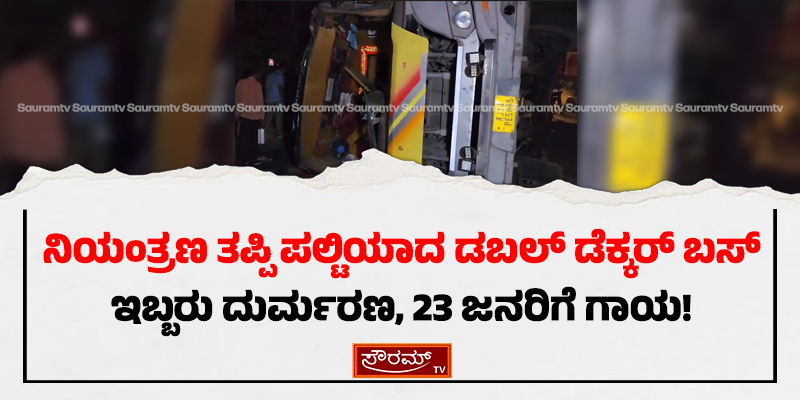 ನಿಯಂತ್ರಣ ತಪ್ಪಿ ಪಲ್ಟಿಯಾದ ಡಬಲ್ ಡೆಕ್ಕರ್ ಬಸ್: ಇಬ್ಬರು ದುರ್ಮರಣ, 23 ಜನರಿಗೆ ಗಾಯ!