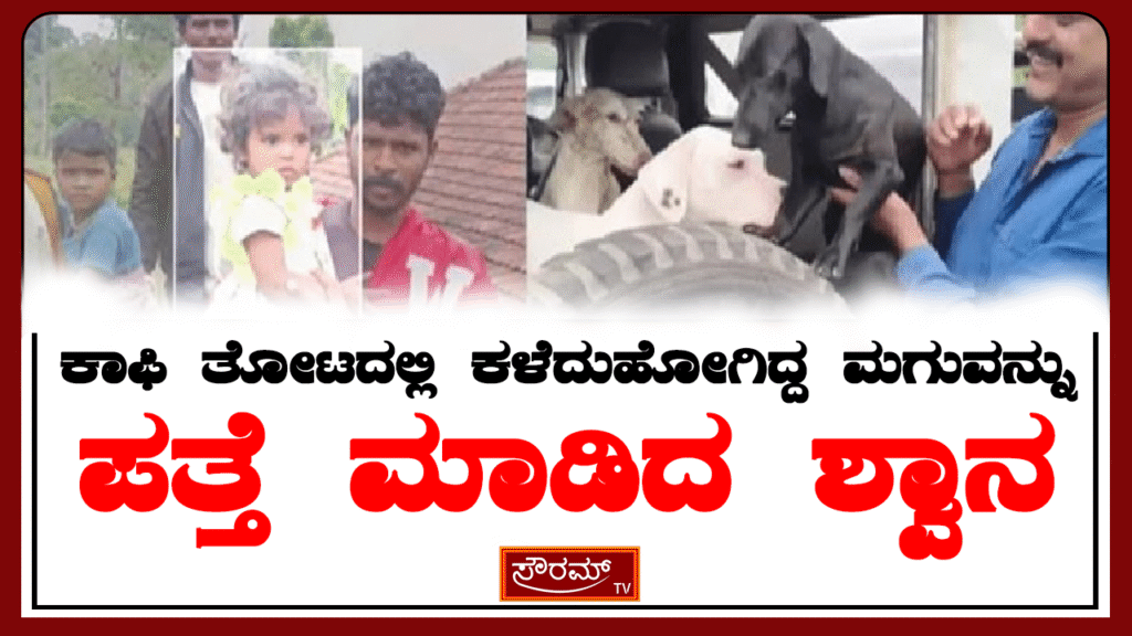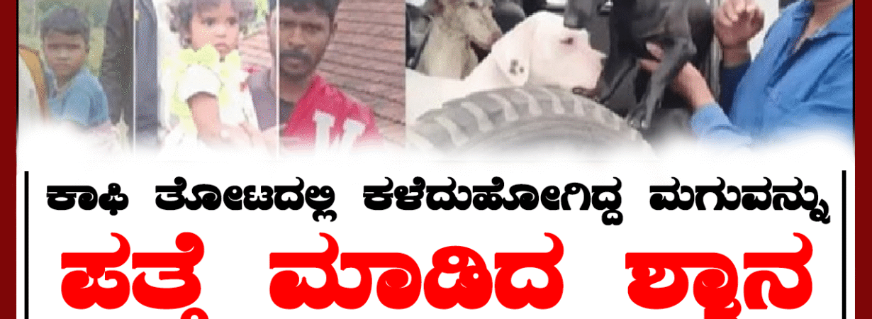 ಕೊಡಗು : ಕಾಫಿ ತೋಟದಲ್ಲಿ ನಾಪತ್ತೆಯಾಗಿದ್ದ ಮಗುವನ್ನು ಶ್ವಾನ ಒಂದು ಪತ್ತೆ ಹಚ್ಚಿರುವ ಘಟನೆ ಕೊಡಗು ನಲ್ಲಿ ನಡೆದಿದೆ. ಪೊನ್ನಂಪೇಟೆ ತಾಲೂಕಿನ ಕೊಂಕಣ ಗ್ರಾಮದಲ್ಲಿ ಈ ಒಂದು ಘಟನೆ ನಡೆದಿತ್ತು.