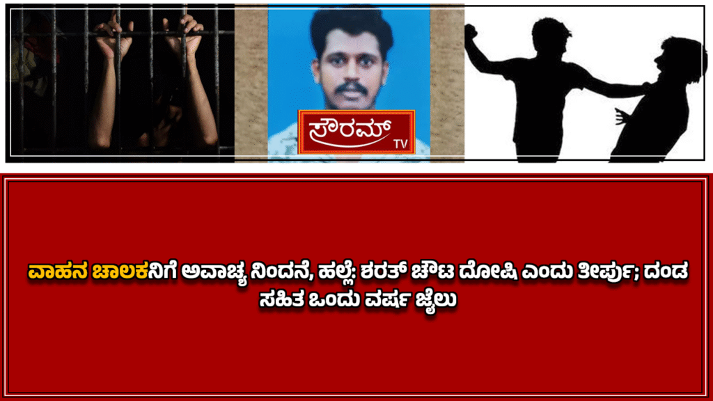 ವಾಹನ ಚಾಲಕನಿಗೆ ಅವಾಚ್ಯ ನಿಂದನೆ, ಹಲ್ಲೆ: ಶರತ್ ಚೌಟ ದೋಷಿ ಎಂದು ತೀರ್ಪು; ದಂಡ ಸಹಿತ ಒಂದು ವರ್ಷ ಜೈಲು.