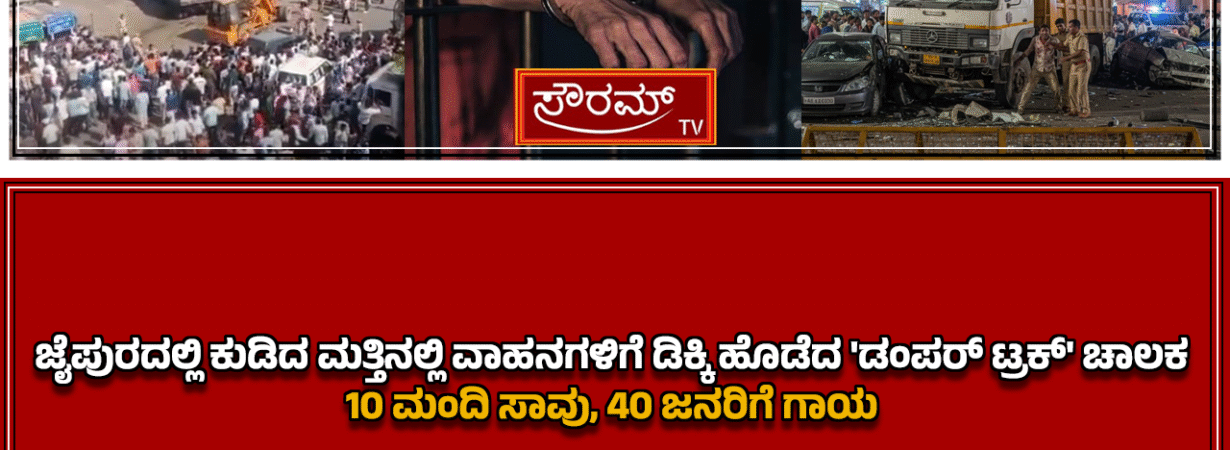 ಜೈಪುರದಲ್ಲಿ ಕುಡಿದ ಮತ್ತಿನಲ್ಲಿ ವಾಹನಗಳಿಗೆ ಡಿಕ್ಕಿ ಹೊಡೆದ ‘ಡಂಪರ್ ಟ್ರಕ್’ ಚಾಲಕ ; 10 ಮಂದಿ ಸಾವು, 40 ಜನರಿಗೆ ಗಾಯ.