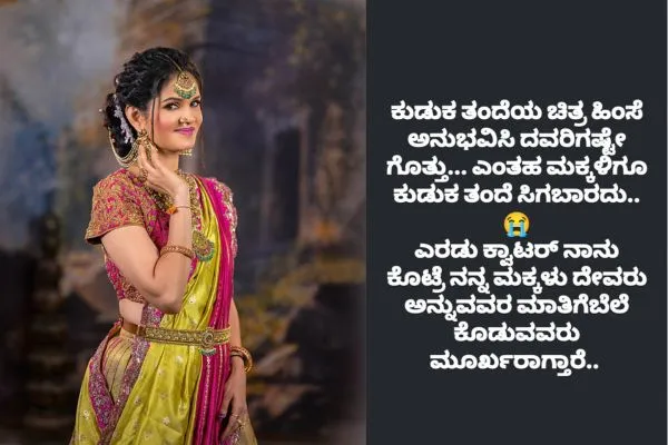 ಕುಡುಕ ತಂದೆಯ ಚಿತ್ರ ಹಿಂಸೆ ಅನುಭವಿಸಿದವರಿಗಷ್ಟೇ ಗೊತ್ತು. ಎಂತಹ ಮಕ್ಕಳಿಗೂ ಕುಡುಕ ತಂದೆ ಸಿಗಬಾರದು. ಎರಡು ಕ್ವಾಟರ್ ನಾನು ಕೊಟ್ರೆ ನನ್ನ ಮಕ್ಕಳು ದೇವರು ಅನ್ನುವವರ ಮಾತಿಗೆ ಬೆಲೆ ಕೊಡುವವರು ಮೂರ್ಖರಾಗ್ತಾರೆ.. ಅಂತ ಬರೆದುಕೊಂಡಿದ್ದಾರೆ.