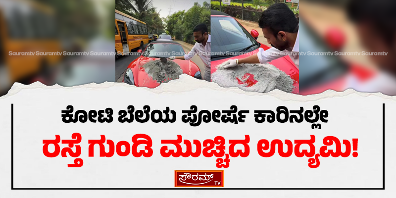 ಕೋಟಿ ಬೆಲೆಯ ಪೋರ್ಷೆ ಕಾರಿನಲ್ಲೇ ರಸ್ತೆ ಗುಂಡಿ ಮುಚ್ಚಿದ ಉದ್ಯಮಿ!