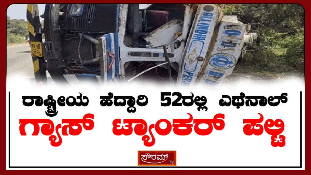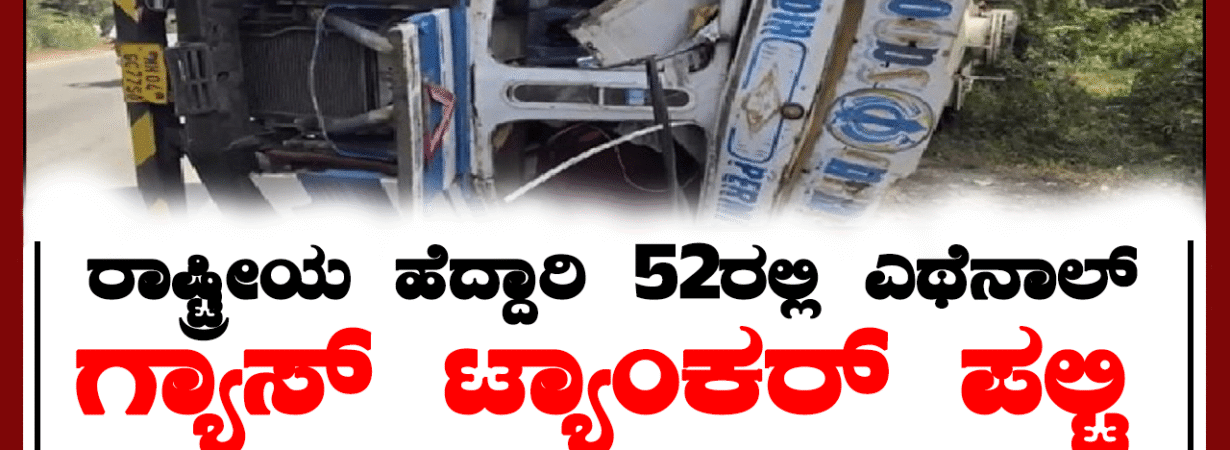 ರಾಷ್ಟ್ರೀಯ ಹೆದ್ದಾರಿ 52ರಲ್ಲಿ ಎಥೆನಾಲ್ ಗ್ಯಾಸ್ ಟ್ಯಾಂಕರ್ ಪಲ್ಟಿ