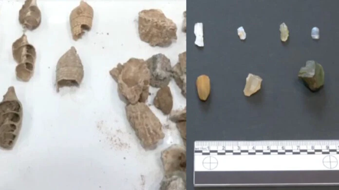 ಅವುಗಳಲ್ಲಿ ಹೆಚ್ಚಿನವು ಚೂಪಾದ ಹಾಗೂ ಮುರಿದ ಚಿಪ್ಪುಗಳಿದ್ದವು. ಮಾನವರು ಮುರಿದ ಚಿಪ್ಪುಗಳನ್ನು ಒಂದೇ ಸ್ಥಳದಲ್ಲಿ ಸಂಗ್ರಹಿಸಲ್ಪಟ್ಟಲ್ಲಿ, ಪುರಾತತ್ತ್ವಜ್ಞರು ಅದನ್ನು ಶೆಲ್ ಮಿಡೆನ್ಗಳು ಅಥವಾ ಶೆಲ್ ಸ್ಕ್ಯಾಟರ್ಗಳು ಎಂದು ಕರೆಯುತ್ತಾರೆ. ಹಳೆಯ ಕಾಲದಲ್ಲಿ ಅಂದಿನ ಜನರು ಅವರು ಬಳಸಿದ್ದಿರಬೇಕಾದ ಕೆಲವು ಕಲ್ಲಿನ ಉಪಕರಣಗಳನ್ನು ಸಹ ನಾವು ಕಂಡುಕೊಂಡಿದ್ದೇವೆ. ಇವುಗಳನ್ನು ಸಂಯೋಜಿತ ಉಪಕರಣಗಳು ಎಂದು ಕರೆಯಲಾಗುತ್ತದೆ.
