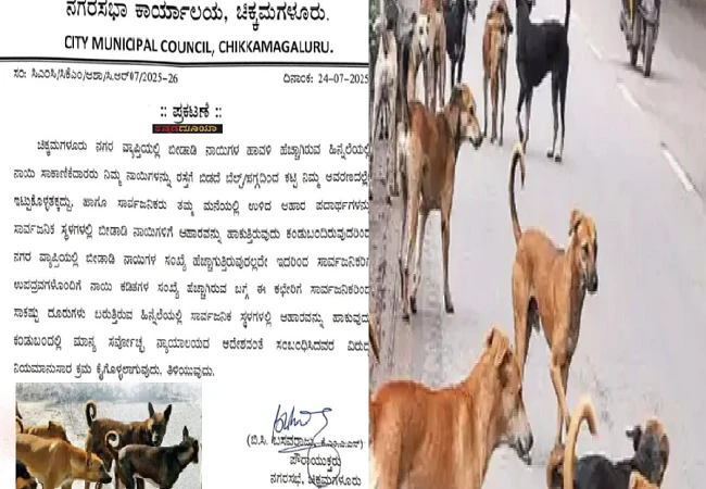 ಹೌದು, ಚಿಕ್ಕಮಗಳೂರು ನಗರ ವ್ಯಾಪ್ತಿಯಲ್ಲಿ ಬೀಡಾಡಿ ನಾಯಿಗಳ ಹಾವಳಿ ಹೆಚ್ಚಾಗಿರುವ ಹಿನ್ನೆಲೆಯಲ್ಲಿ ನಾಯಿ ಸಾಕಾಣಿಕೆದಾರರು ನಿಮ್ಮ ನಾಯಿಗಳನ್ನು ರಸ್ತೆಗೆ ಬಿಡದೆ ಬೆಲ್ಟ್/ಹಗ್ಗದಿಂದ ಕಟ್ಟಿ ನಿಮ್ಮ ಆವರಣದಲ್ಲೇ ಇಟ್ಟುಕೊಳ್ಳತಕ್ಕದ್ದು, ಹಾಗೂ ಸಾರ್ವಜನಿಕರು ತಮ್ಮ ಮನೆಯಲ್ಲಿ ಉಳಿದ ಆಹಾರ ಪದಾರ್ಥಗಳನ್ನು ಸಾರ್ವಜನಿಕ ಸ್ಥಳಗಳಲ್ಲಿ ಬೀಡಾಡಿ ನಾಯಿಗಳಿಗೆ ಆಹಾರವನ್ನು ಹಾಕುತ್ತಿರುವುದು ಕಂಡುಬಂದಿರುವುದರಿಂದ ನಗರ ವ್ಯಾಪ್ತಿಯಲ್ಲಿ ಬೀಡಾಡಿ ನಾಯಿಗಳ ಸಂಖ್ಯೆ ಹೆಚ್ಚಾಗುತ್ತಿರುವುದಲ್ಲದೇ ಇದರಿಂದ ಸಾರ್ವಜನಿಕರಿಗೆ ಉಪದ್ರವಗಳೊಂದಿಗೆ ನಾಯಿ ಕಡಿತಗಳ ಸಂಖ್ಯೆ ಹೆಚ್ಚಾಗಿರುವ ಬಗ್ಗೆ ಈ ಕಛೇರಿಗೆ ಸಾರ್ವಜನಿಕರಿಂದ ಸಾಕಷ್ಟು ದೂರುಗಳು ಬರುತ್ತಿರುವ ಹಿನ್ನೆಲೆಯಲ್ಲಿ ಸಾರ್ವಜನಿಕ ಸ್ಥಳಗಳಲ್ಲಿ ಆಹಾರವನ್ನು ಹಾಕುವುದು ಕಂಡುಬಂದಲ್ಲಿ ಮಾನ್ಯ ಸರ್ವೋಚ್ಛ ನ್ಯಾಯಾಲಯದ ಆದೇಶದಂತೆ ಸಂಬಂಧಿಸಿದವರ ವಿರುದ್ಧ ನಿಯಮಾನುಸಾರ ಕ್ರಮ ಕೈಗೊಳ್ಳಲಾಗುವುದು ಎಂದು ಸೂಚಿಸಿದೆ.