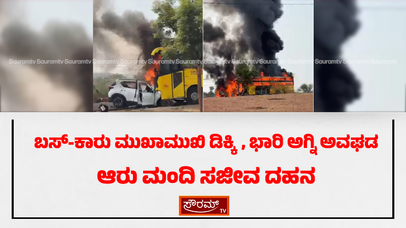 ಬಸ್-ಕಾರು ಮುಖಾಮುಖಿ ಡಿಕ್ಕಿ, ಭಾರಿ ಅಗ್ನಿ ಅವಘಡ; ಆರು ಮಂದಿ ಸಜೀವ ದಹನ