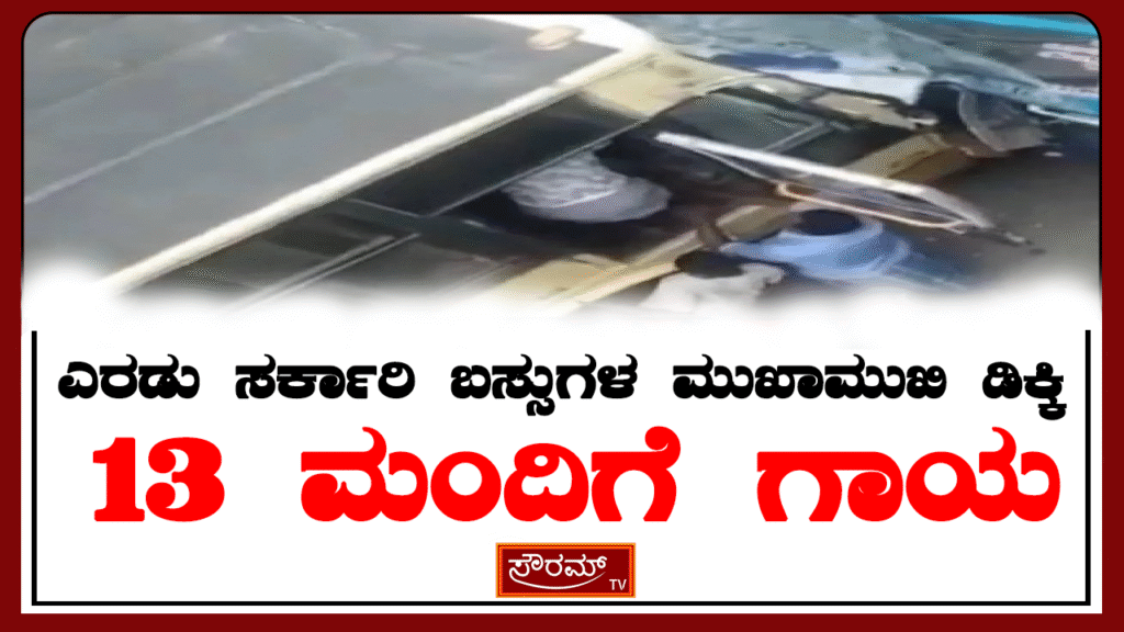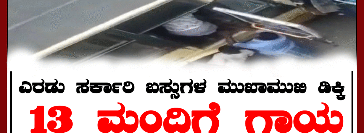 ಎರಡು ಸರ್ಕಾರಿ ಬಸ್ಸುಗಳ ಮುಖಾಮುಖಿ ಡಿಕ್ಕಿ; 13 ಮಂದಿಗೆ ಗಾಯ