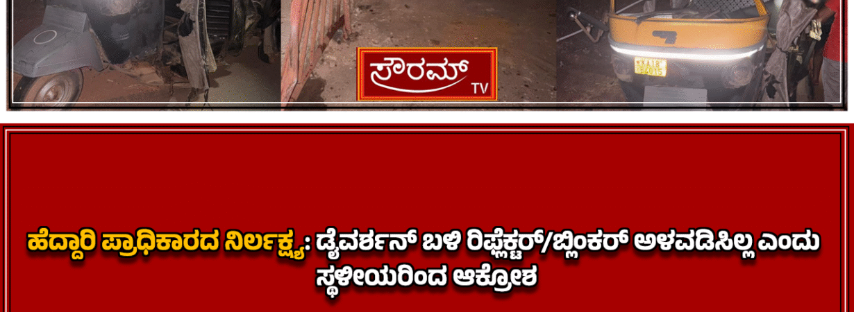 ಹೆದ್ದಾರಿ ಪ್ರಾಧಿಕಾರದ ನಿರ್ಲಕ್ಷ್ಯ: ಡೈವರ್ಶನ್ ಬಳಿ ರಿಫ್ಲೆಕ್ಟರ್/ಬ್ಲಿಂಕರ್ ಅಳವಡಿಸಿಲ್ಲ ಎಂದು ಸ್ಥಳೀಯರಿಂದ ಆಕ್ರೋಶ.