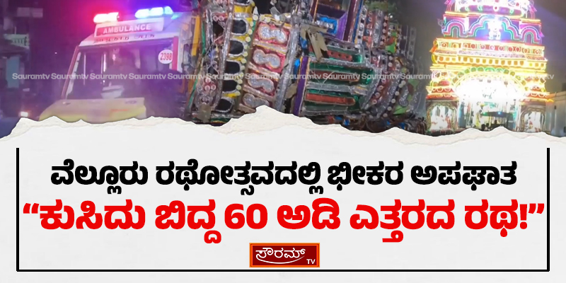 ವೆಲ್ಲೂರು ರಥೋತ್ಸವದಲ್ಲಿ ಭೀಕರ ಅಪಘಾತ: ಕುಸಿದು ಬಿದ್ದ 60 ಅಡಿ ಎತ್ತರದ ರಥ!