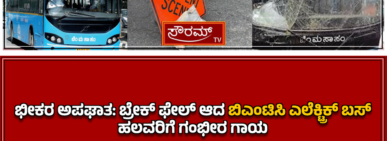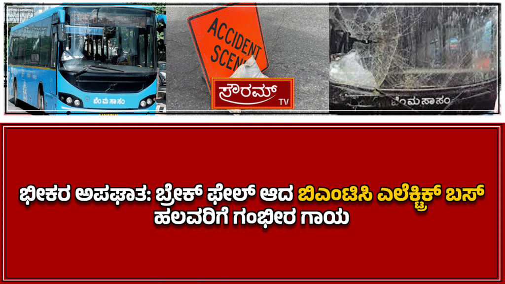 ಭೀಕರ ಅಪಘಾತ: ಬ್ರೇಕ್ ಫೇಲ್ ಆದ ಬಿಎಂಟಿಸಿ ಎಲೆಕ್ಟ್ರಿಕ್ ಬಸ್; ಹಲವರಿಗೆ ಗಂಭೀರ ಗಾಯ,