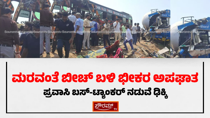 ಮರವಂತೆ ಬೀಚ್ ಬಳಿ ಭೀಕರ ಅಪಘಾತ: ಪ್ರವಾಸಿ ಬಸ್-ಟ್ಯಾಂಕರ್ ನಡುವೆ ಢಿಕ್ಕಿ
