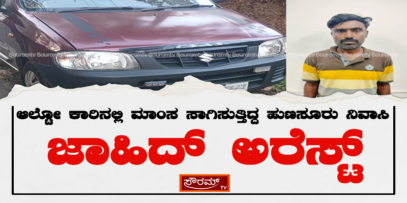 ಆಲ್ಟೋ ಕಾರಿನಲ್ಲಿ ಮಾಂಸ ಸಾಗಿಸುತ್ತಿದ್ದ ಹುಣಸೂರು ನಿವಾಸಿ ಜಾಹಿದ್ ಅರೆಸ್ಟ್.