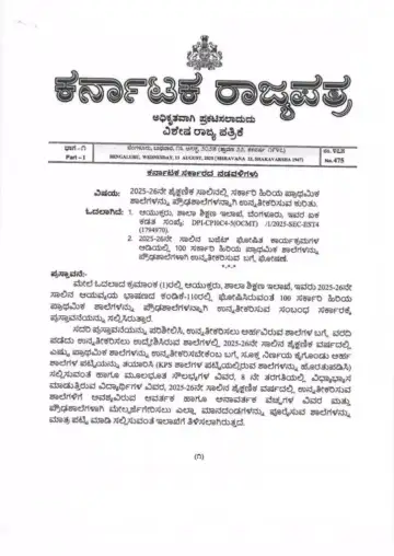 ಮೇಲೆ ಓದಲಾದ ಕ್ರಮಾಂಕ (1)ರಲ್ಲಿ ಆಯುಕ್ತರು, ಶಾಲಾ ಶಿಕ್ಷಣ ಇಲಾಖೆ, ಇವರು 2025-26ನೇ ಸಾಲಿನ ಆಯವ್ಯಯ ಭಾಷಣದ ಕಂಡಿಕೆ-110ರಲ್ಲಿ ಘೋಷಿಸಿರುವಂತೆ 100 ಸರ್ಕಾರಿ ಹಿರಿಯ ಪ್ರಾಥಮಿಕ ಶಾಲೆಗಳನ್ನು ಪ್ರೌಢಶಾಲೆಗಳನ್ನಾಗಿ ಉನ್ನತೀಕರಿಸುವ ಸಂಬಂಧ ಸರ್ಕಾರಕ್ಕೆ ಪ್ರಸ್ತಾವನೆಯನ್ನು ಸಲ್ಲಿಸಿರುತ್ತಾರೆ.