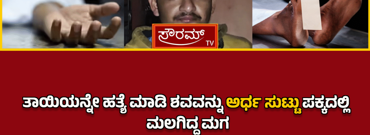 ತಾಯಿಯನ್ನೇ ಹತ್ಯೆ ಮಾಡಿ ಶವವನ್ನು ಅರ್ಧ ಸುಟ್ಟು ಪಕ್ಕದಲ್ಲಿ ಮಲಗಿದ್ದ ಮಗ