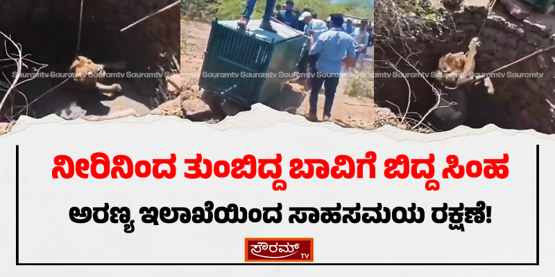 ನೀರಿನಿಂದ ತುಂಬಿದ್ದ ಬಾವಿಗೆ ಬಿದ್ದ ಸಿಂಹ; ಅರಣ್ಯ ಇಲಾಖೆಯಿಂದ ಸಾಹಸಮಯ ರಕ್ಷಣೆ!