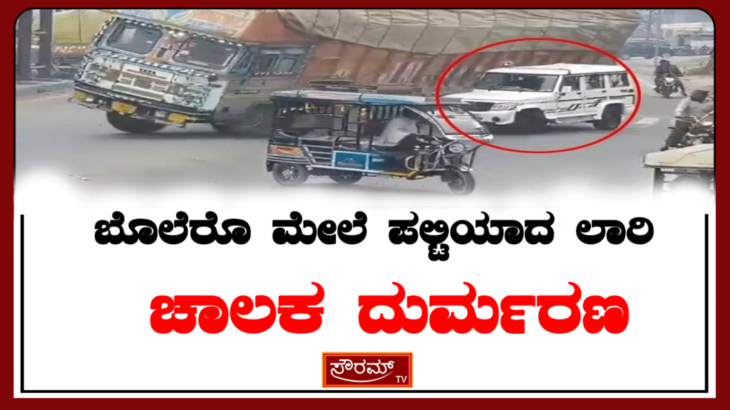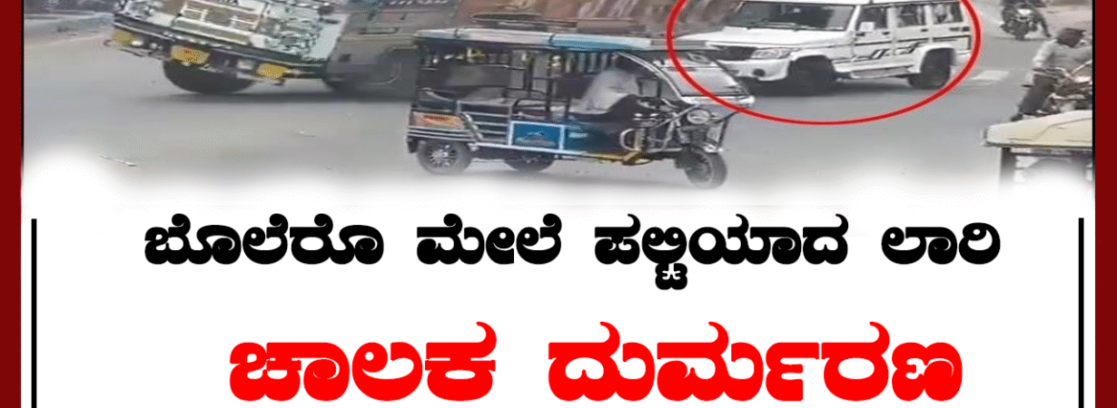 ಬೊಲೆರೊ ಮೇಲೆ ಪಲ್ಟಿಯಾದ ಲಾರಿ: ಚಾಲಕ ದುರ್ಮರಣ