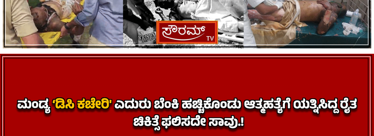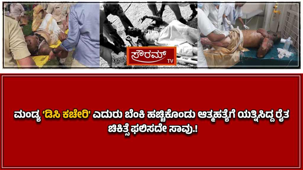 ಮಂಡ್ಯ `ಡಿಸಿ ಕಚೇರಿ’ ಎದುರು ಬೆಂಕಿ ಹಚ್ಚಿಕೊಂಡು ಆತ್ಮಹತ್ಯೆಗೆ ಯತ್ನಿಸಿದ್ದ ರೈತ ಚಿಕಿತ್ಸೆ ಫಲಿಸದೇ ಸಾವು.