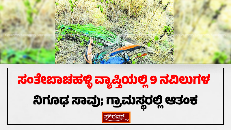 ಸಂತೇಬಾಚಹಳ್ಳಿ (ಮಂಡ್ಯ ಜಿಲ್ಲೆ: ಸಮೀಪದ ಬೆಟ್ಟದಪುರ ಹಾಗೂ ಸೋಮೇನಹಳ್ಳಿ ಗಡಿ ಪ್ರದೇಶದಲ್ಲಿ 9 ನವಿಲುಗಳ ಕಳೇಬರಗಳು ಪತ್ತೆಯಾಗಿವೆ.